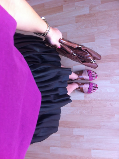 ME: sandálky - aktuálne z HM/ sukňa - MOHITO/ tričko - HM/ kabelka - Carpisa/ hodinky - River Island/ retiazka - Bijou Brigitte